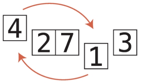 배열 [4, 2, 7, 1, 3]을 선택 정렬로 정렬해보자.