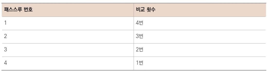 5개의 원소를 포함하는 배열 예제로 돌아가면, 총 10번의 비교를 해야 했다.