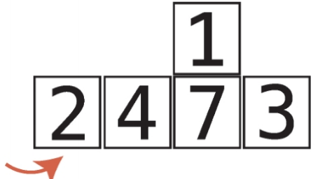 3단계 : 4가 2보다 크므로 4를 오른쪽으로 시프트한다.