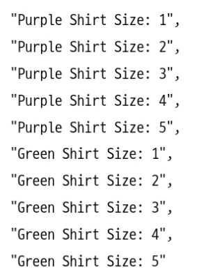 예를 들어, ["Purple Shirt", "Green Shirt"]라는 배열을 받았다면 이 셔츠에 들어갈 상표 텍스트는 아래와 같다.