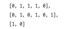 이 예제는 배열들의 배열을 받는다. 이때 안쪽 배열들은 다수의 1과 0으로 이뤄진다.