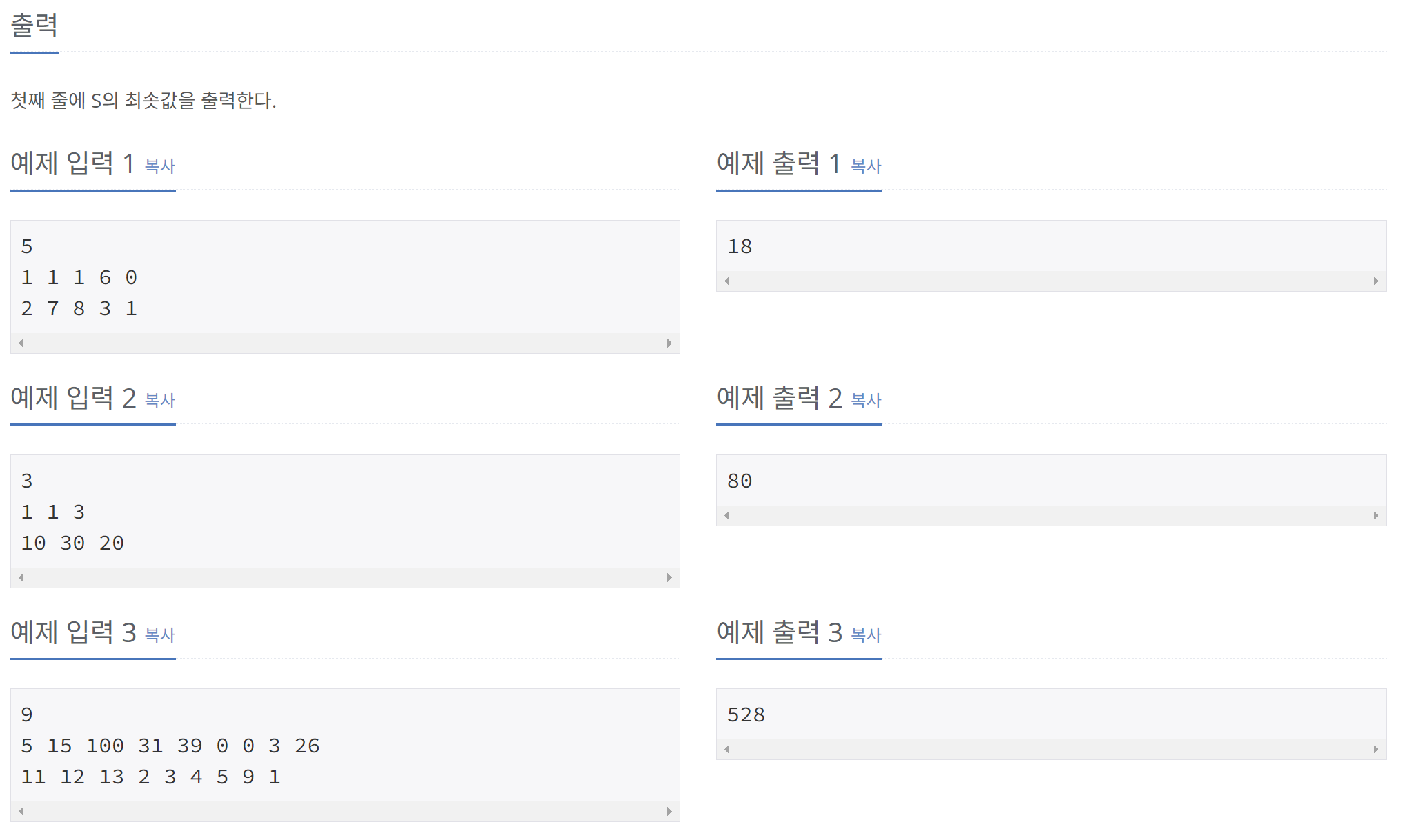 - A는 오름차순으로 정렬하고, B는 내림차순으로 정렬하여 인덱스가 같은 수 끼리 곱해서 더한 값을 출력한다.