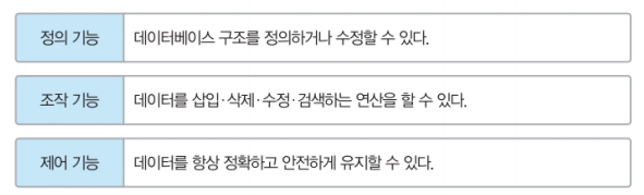 DBMS가 제공하는 주요 기능은 아래의 세 가지로 요약할 수 있다.