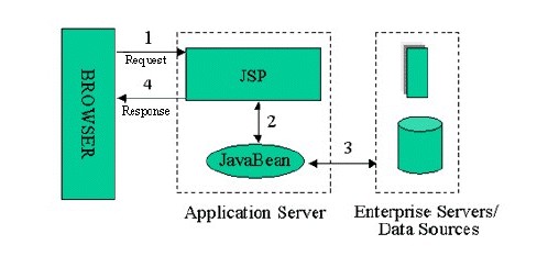 - JSP(Controller + View)와 Java Bean(Model)로 구성하여 개발하는 형태