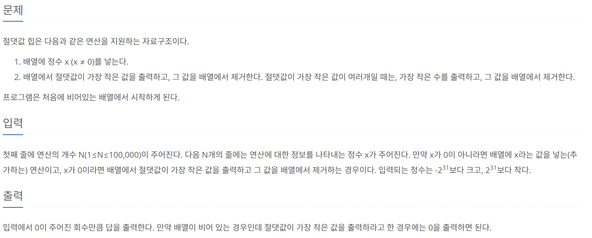 원본 출처 : https://www.acmicpc.net/problem/11286