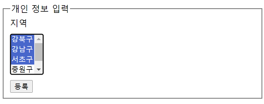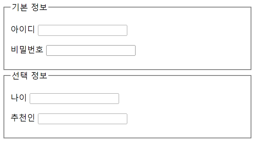 fieldset 태그로 그룹을 지으면 그룹별로 박스 모양의 테두리가 생긴다.