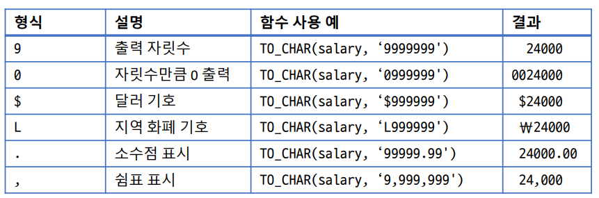 숫자와 날짜 데이터를 문자 데이터로 변환하는 함수