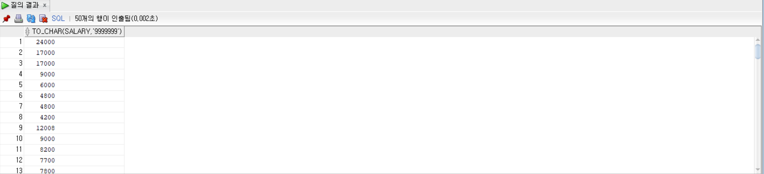 SELECT TO_CHAR(salary, '9999999') FROM employees;