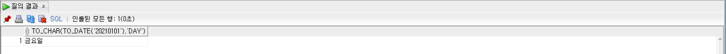 --2021년 01월 01일의 요일을 조회