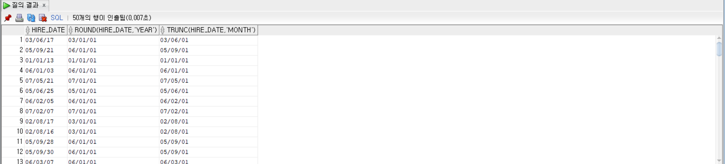• 날짜를 연도나 월 단위로 절삭하는 TRUNC() 함수