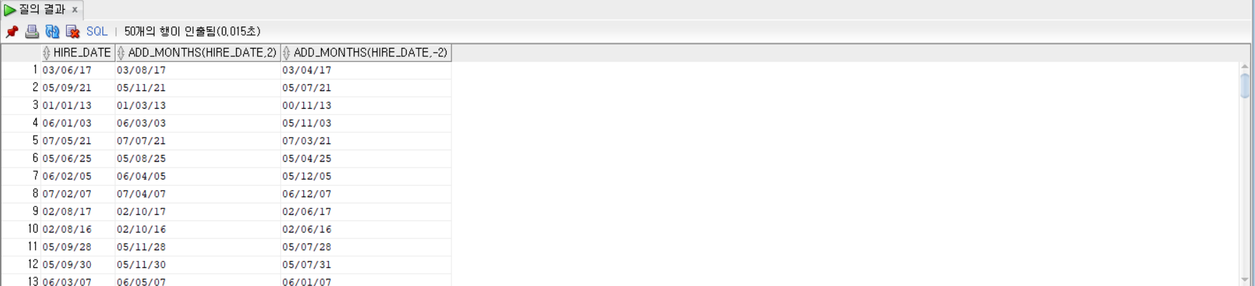 ADD_MONTHS(hire_date, 2), ADD_MONTHS(hire_date, -2)