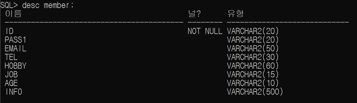 //INSERT INTO members(id, passwd, email) VALUES( 'idData', 'passwdData', 'emailData' )
