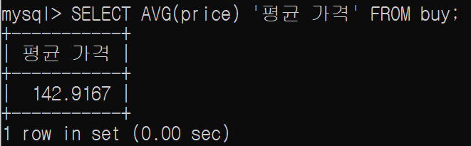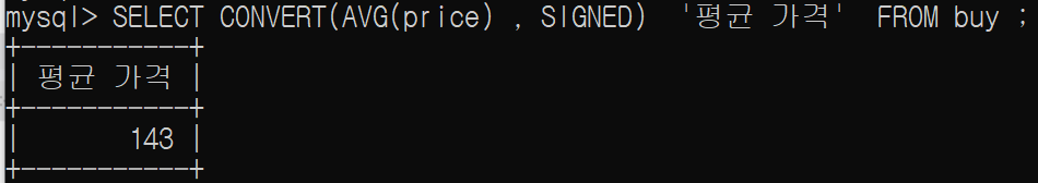SELECT CONVERT(AVG(price) , SIGNED) '평균 가격' FROM buy ;