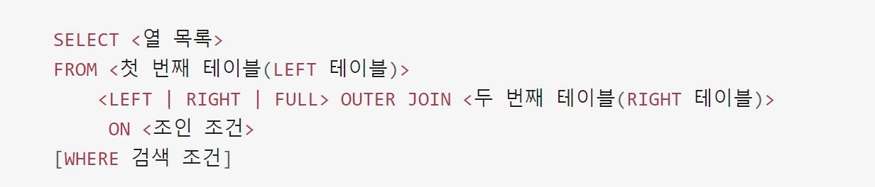 외부 조인은 두 테이블을 조인할 때 필요한 내용이 한쪽 테이블에만 있어도 결과를 추출할 수 있다.