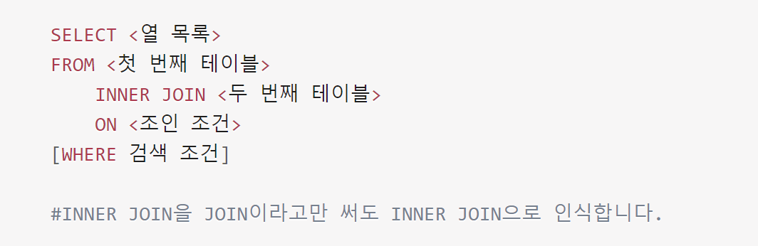 이 회원의 주소, 연락처를 알기 위해 정보가 있는 회원 테이블과 결합하는 것이 내부 조인이다.