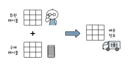 물건을 배송하려면 회원 테이블의 회원 이름과 연락처, 구매 테이블의 회원이 구매한 물건에 대한 정보가 함께 필요하다.
