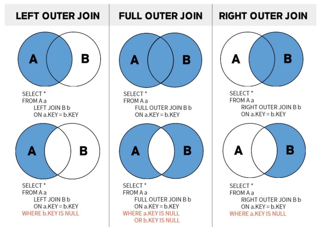 FULL OUTTER JOIN은 왼쪽 외부 조인과 오른쪽 외부 조인이 합쳐진 것이다.