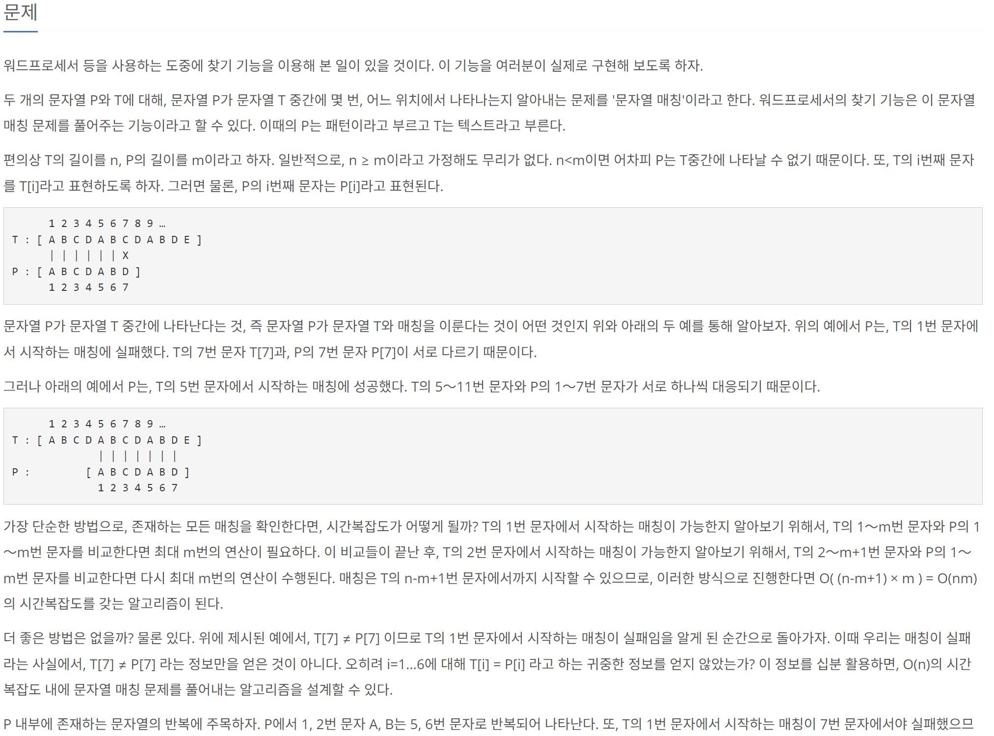 if(str.charAt(i) == pattern.charAt(index)) //접두사와 접미사가 같을 때