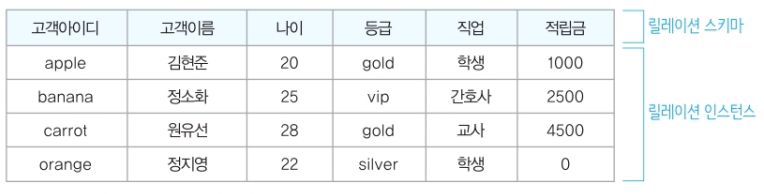 이러한 행과 열의 집합은 릴레이션으로 간주된다.