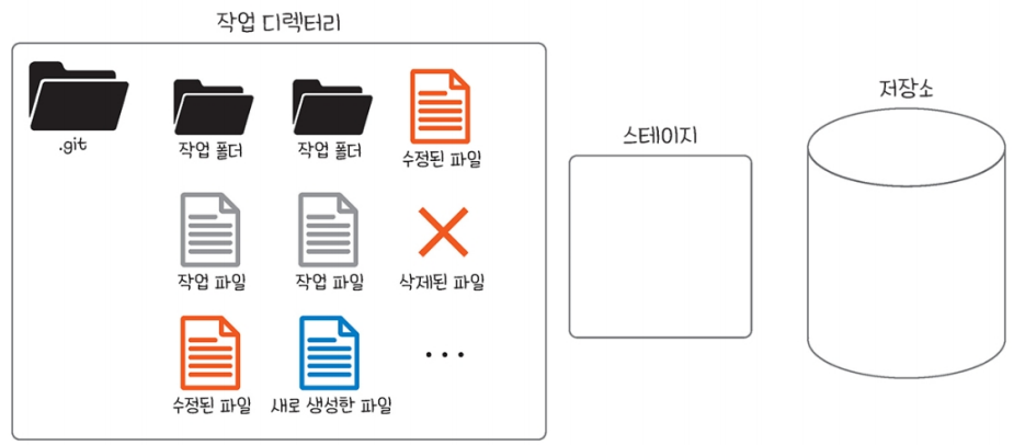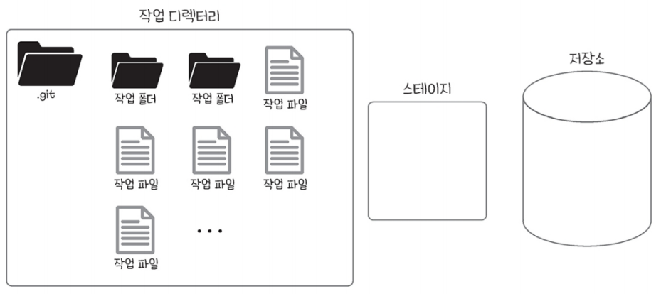 - 작업 디렉터리(working directory) : 프로젝트가 위치하는 공간 즉, 버전 관리의 대상이 위치하는 공간