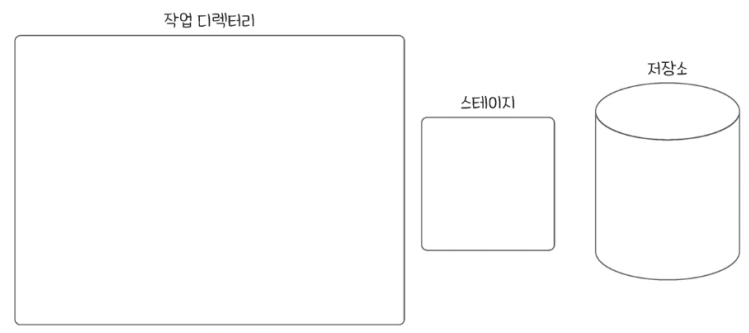 작업 디렉터리는 프로젝트가 위치한 공간이라 눈으로 직접 볼 수 있는 반면, 스테이지는 명시적으로 보이지 않는다.