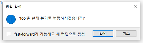 여기서 현재 브랜치로 foo 병합 버튼을 누르면 병합이 된다.