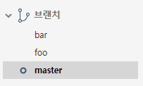 아래처럼 foo가 진하게 표시되어 있다면 현재 작업 환경이 foo 브랜치임을 나타낸다.