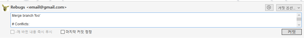 아랫부분은 병합하려는 브랜치, 즉 foo 브랜치의 내용이 적혀있다.