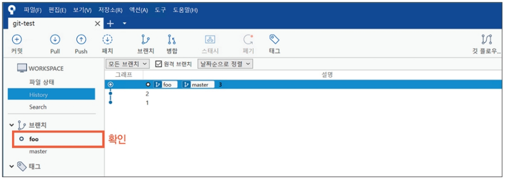 따라서 foo 브랜치로 체크아웃한다.