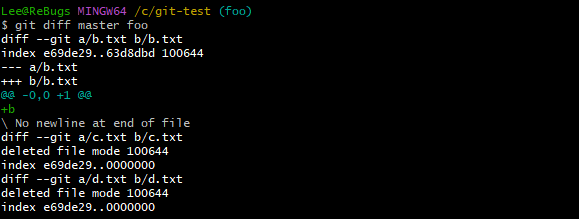왼쪽 브랜치를 기준으로 오른쪽 브랜치에서 달라진 점을 출력한다.
