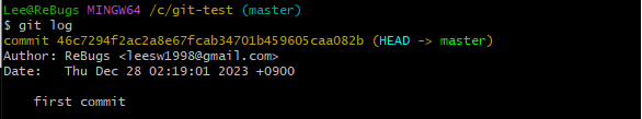 가장 단순한 커밋 조회 명령어는 아래와 같다.