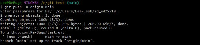 브랜치 이름을 변경하였다면 아래의 명령어만으로 푸시하면 된다.