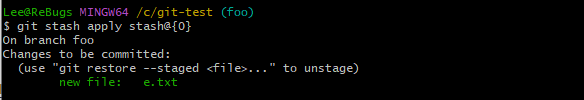 아래의 명령어는 임시 저장한 stash를 다시 불러오는 것이다.