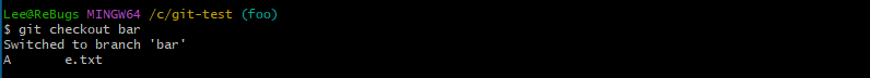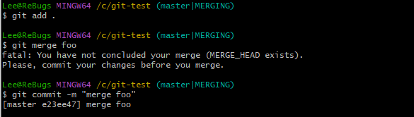 이렇게 되면 master 의 최신 커밋 부분에 foo 브랜치가 재배치 된 것이다.