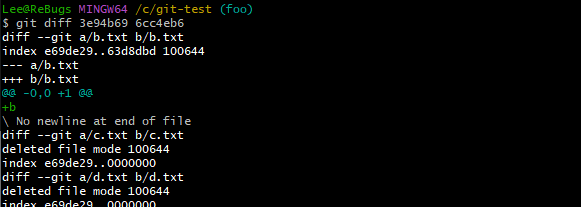 주의해야할 점은 왼쪽 커밋을 기준으로 오른쪽 커밋에서 달라진 점을 출력한다는 것이다.