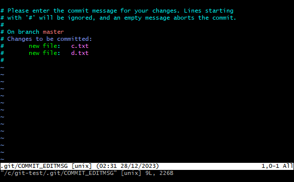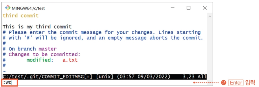 위 캡쳐는git commit 명령어로 인해 Vim 창이 뜬 것