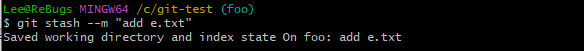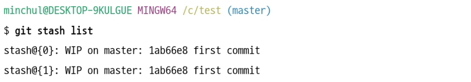 WIP는 Work In Porgress의 준말이고, 어느 브랜치에서 스태시 되었는지, 스태시가 만들어진 커밋해시, 스태시가 만들어졌던 커밋 메시지가 출력된다.