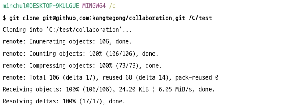- cd 원하는 경로 (폴더가 이미 생성되어 있어야 함)