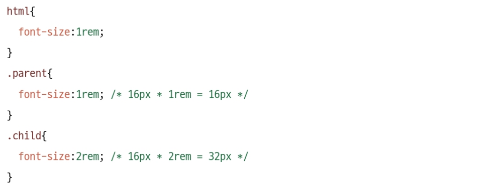 rem 단위는 html 태그의 텍스트 크기에 대한 상대적인 값으로, 1 rem은 html 태그의 텍스트 크기의 1배이다.