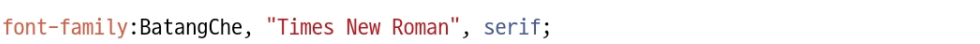 바탕체 글꼴과 타임스 뉴 로먼 글꼴을 적용하고 싶다면 위와 같이 작성하면 된다.