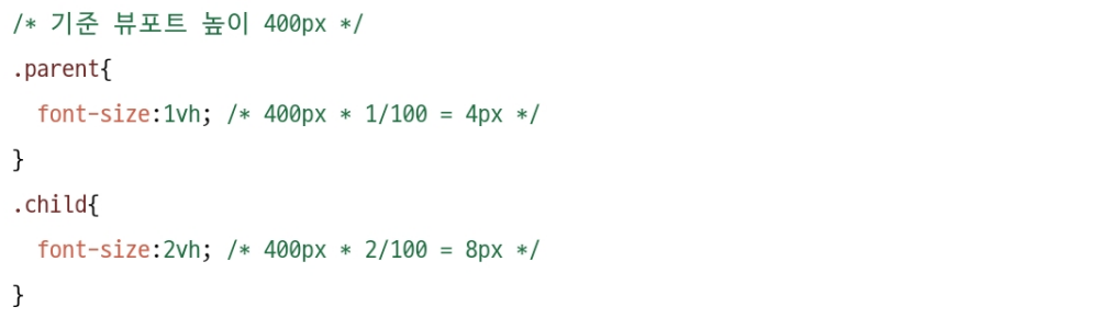 | vh | 뷰포트의 높이를 기준으로 상대적인 크기를 가짐 |
