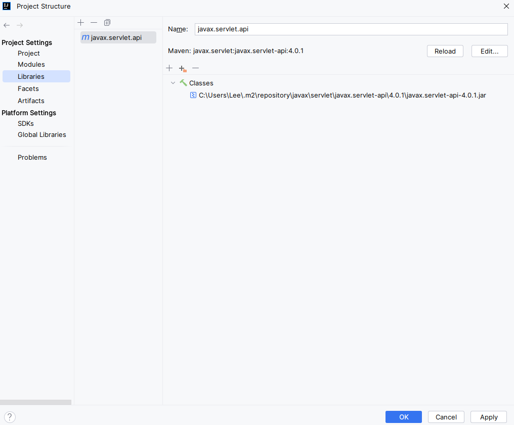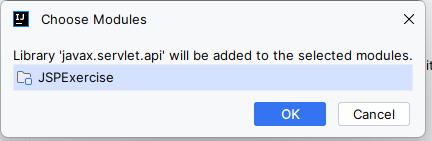 servlet api가 추가된 것을 확인하고 apply - ok 버튼을 누른다.