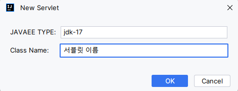 클래스 이름에는 서블릿 이름을 넣어주어서 생성한다.