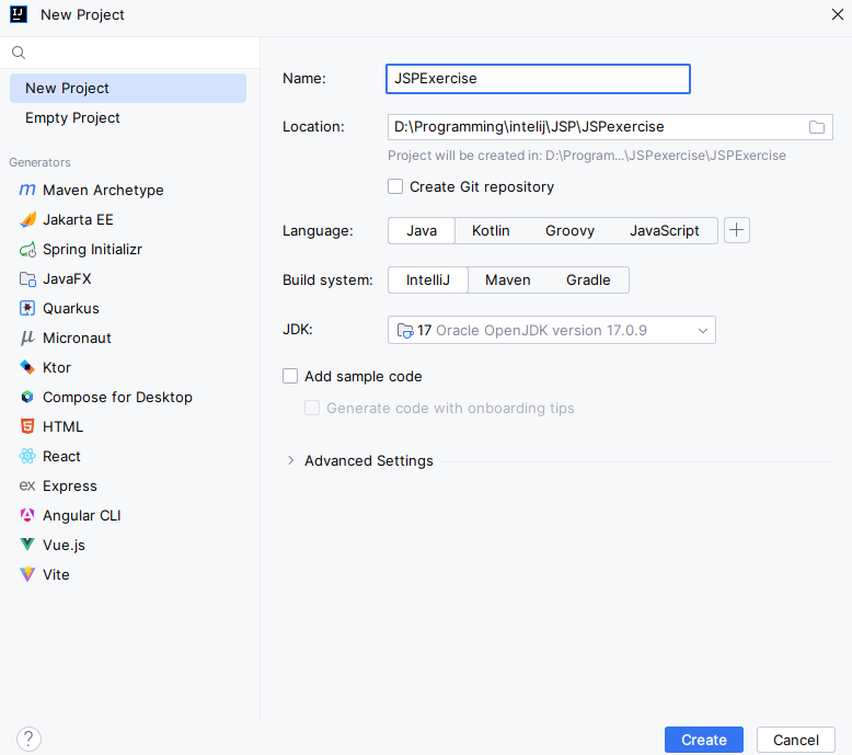 대충 javaee type에 jdk-17을 넣고