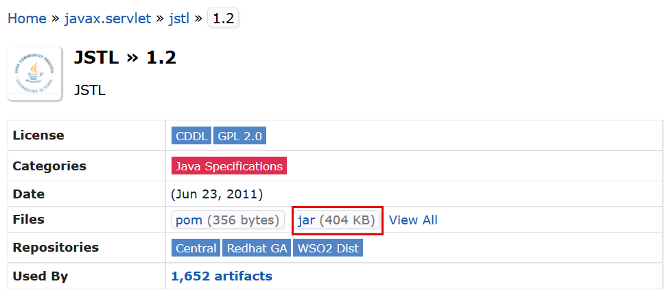 https://mvnrepository.com/artifact/javax.servlet/jstl/1.2