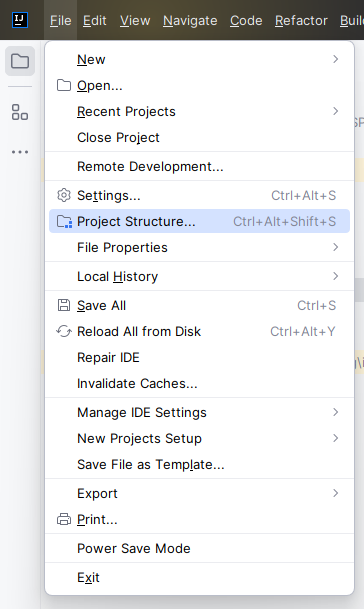 인텔리제이로 돌아와서 Project Structure를 클릭한다.