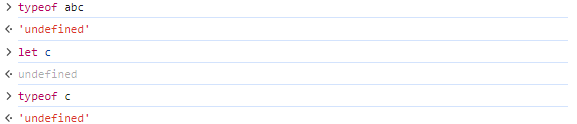 상수와 변수로 선언하지 않은 식별자 또는 값이 없는 변수는 모두 undefined 자료형이다.