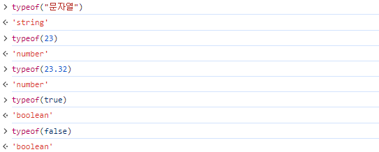 자바스크립트에서 자료형을 확인할 때는 typeof 연산자를 사용한다.