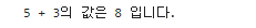 console.log(`5 + 3의 값은 ${5 + 3} 입니다.`)