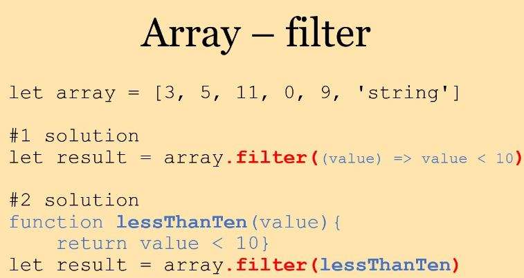 filter() 배열 내에서 조건에 만족하는 요소를 리턴한다.